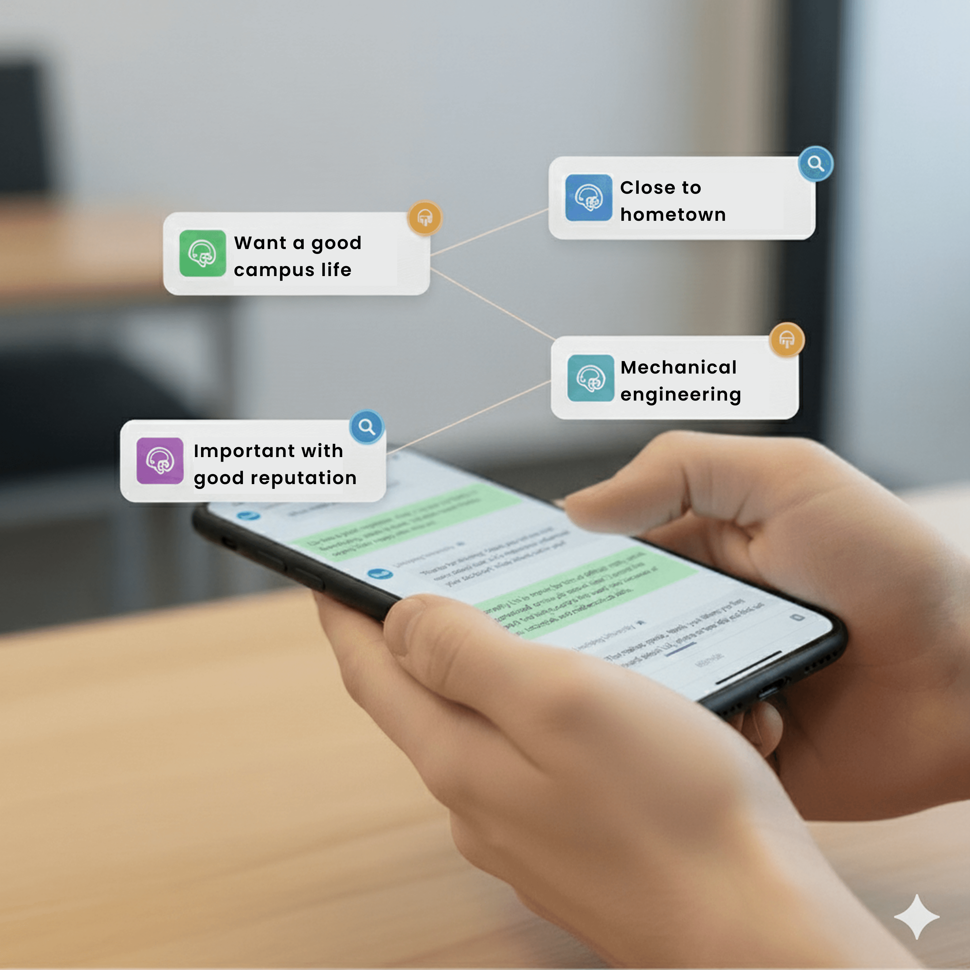 We help you create an AI survey for your university. Then you get a QR code or a link to show new students. When they scan the QR code, the interview starts with a simple question, like "What made you interested in [Your University]?". After that, the AI asks smart follow-up questions based on the student's answer. This makes sure every answer is high quality. It also gives a higher response rate than normal surveys.